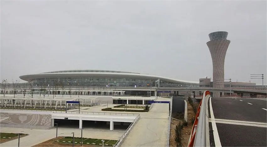 Pagrindiniai 4E lygio tarptautiniai vartai 30 km nuo miesto centro. II fazės plėtra apima oro uostų įrenginius, oro eismo valdymą, degalų tiekimą ir „Shandong Airlines“ ir „China Eastern Airlines“ bazes.