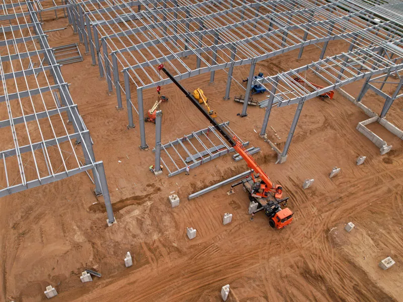 Plieniniai komponentai, įskaitant sijas, kolonėles, petnešas ir stogo santvaras, yra surenkami gamykloje. Naudojamas aukštos kokybės plienas, o komponentai yra gaminami taip, kad būtų tikslios specifikacijos, kad būtų užtikrinta, jog jie tiksliai ir saugiai montuojant. Ši kontroliuojama aplinka leidžia atlikti griežtas kokybės kontrolės priemones, užtikrinančias komponentų patvarumą ir patikimumą.